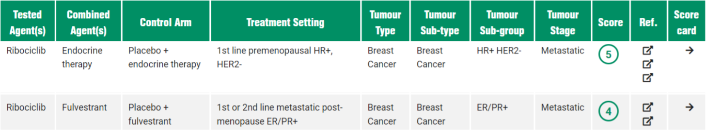 Achieving a five on the ESMO-MCBS is the highest grade in the non-curative setting, and Kisqali received the highest scores across the board in advanced or metastatic breast cancer due to the body of evidence supporting the overall survival and quality of life benefits it provides. The ESMO-MCBS is a validated tool for physicians to assess the value of cancer treatments, and ultimately make informed treatment decisions for their patients.